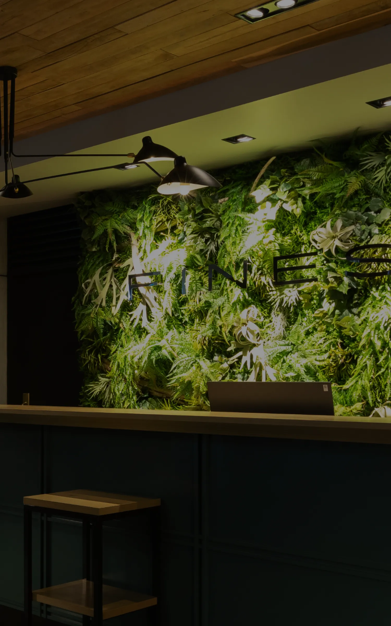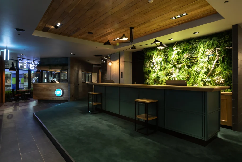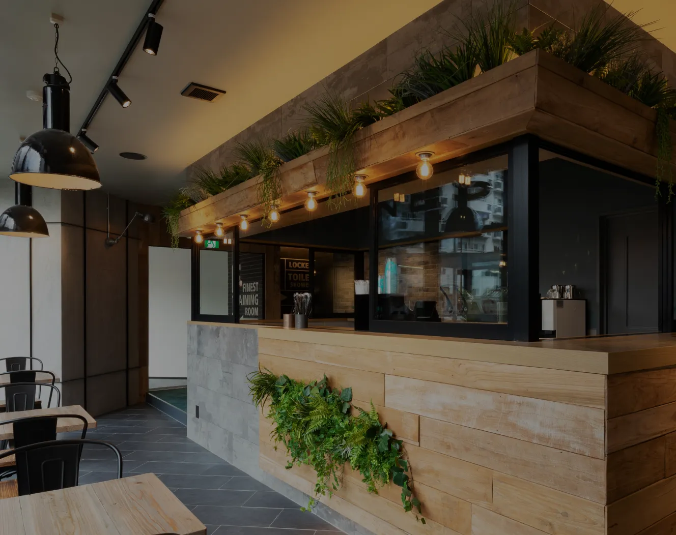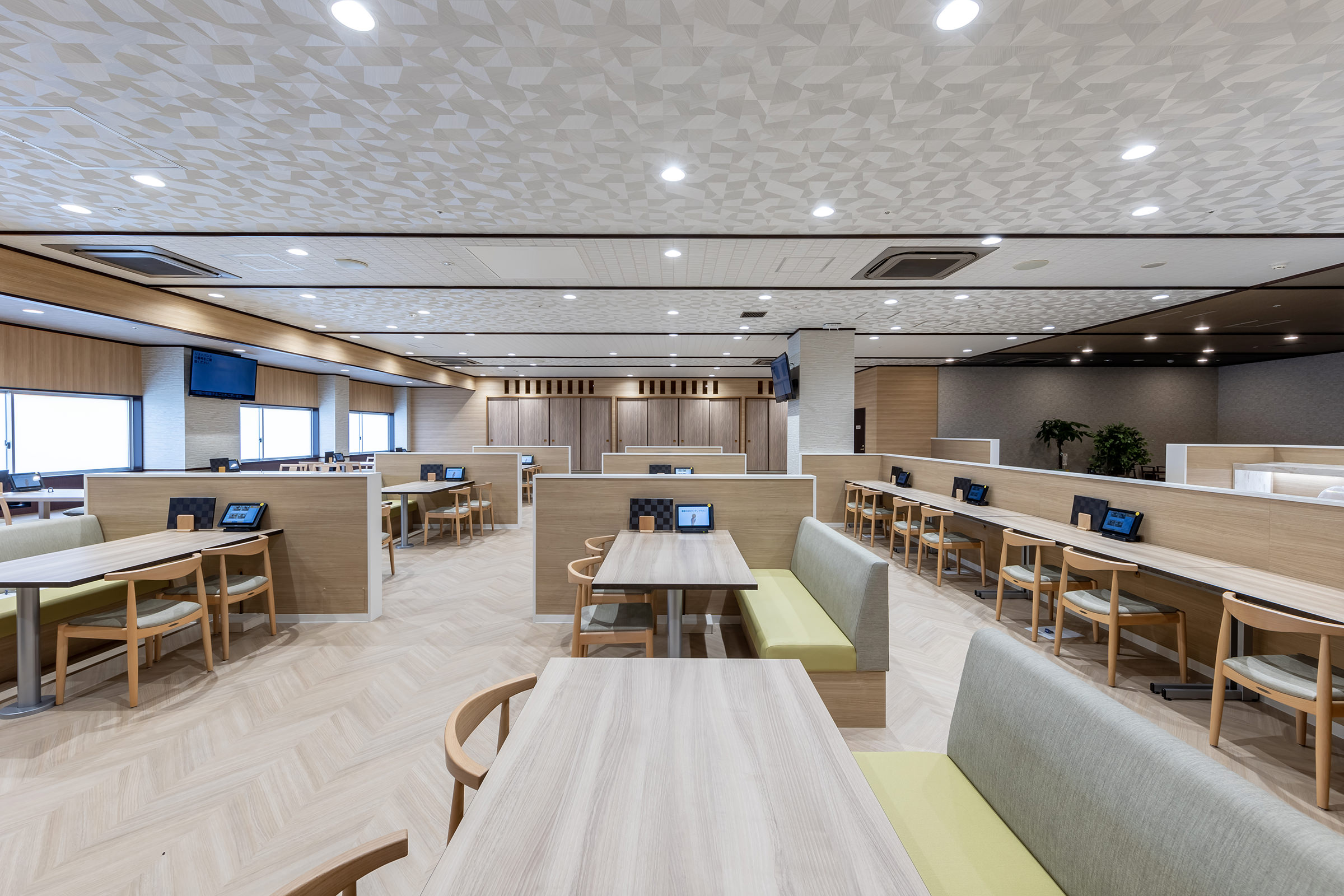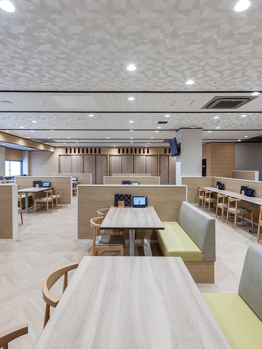 ジムとカフェエリアを含む、二階建てすべての施工を担当。