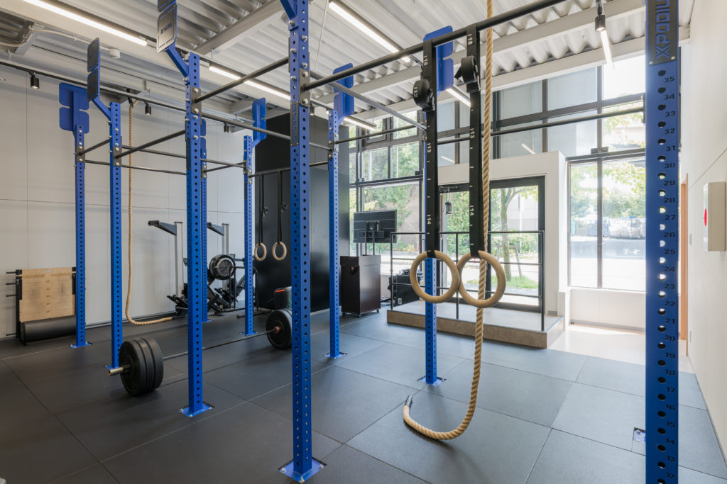 JR高架下のテナントにて店舗内装工事を行いました。トレーニング内容に合わせて内装を設計。メディシンボールを壁に当てるメニューにも対応できるよう、壁内に鉄板を仕込み、安全性と耐久性を確保しました。また、逆立ちトレーニング時にシューズが触れても滑りやすいよう、素材にも工夫を凝らしています。